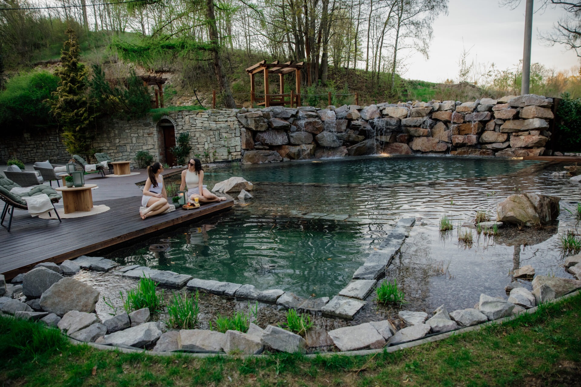 -Vstup do koupacího jezera s vodopádem po celý den